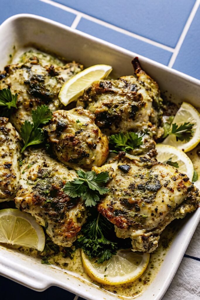 Remove the chicken from the oven and let it rest for about 5 minutes. This helps the juices settle. Add fresh parsley and a squeeze of lemon before serving for a fresh finish.