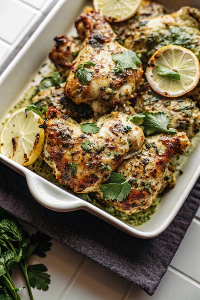 This is such a great flavorful chicken recipe for the family! I use chicken thighs for the meat, but you can swap thighs for chicken breasts (or even drumsticks) if that is what you love. The creamy lemon marinade is best when it coats the chicken completely, so I recommend really tossing them well before baking.