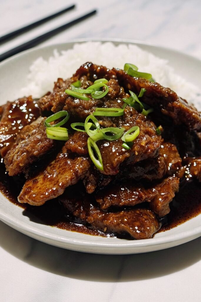 Mongolian beef shines best over steamed white rice or jasmine rice. The sauce soaks in perfectly and makes every bite satisfying. It also works great with fried rice or simple noodles. For balance, serve with sautéed broccoli or steamed snap peas on the side. When friends come over, I like placing it in the center of the table family style so everyone can scoop their own portion.