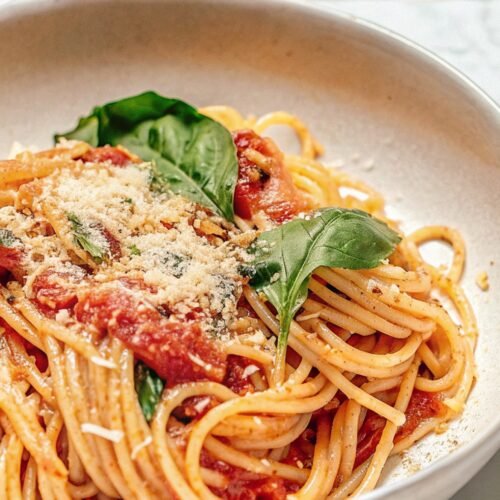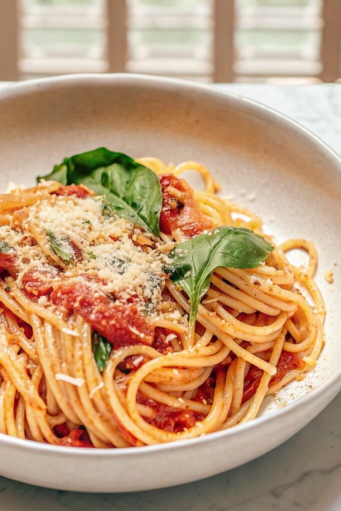 Pasta Pomodoro works beautifully as a main dish with a simple side salad and crusty bread. You can also serve it alongside roasted vegetables for a fuller meal. A drizzle of olive oil and extra Parmesan on top adds a nice finishing touch.