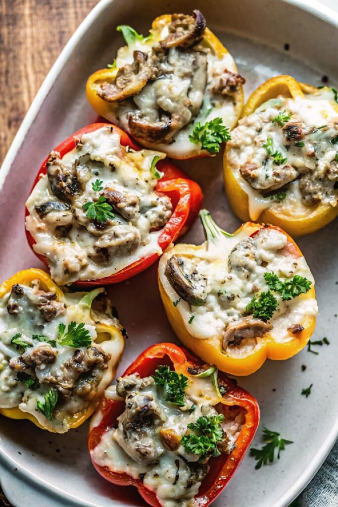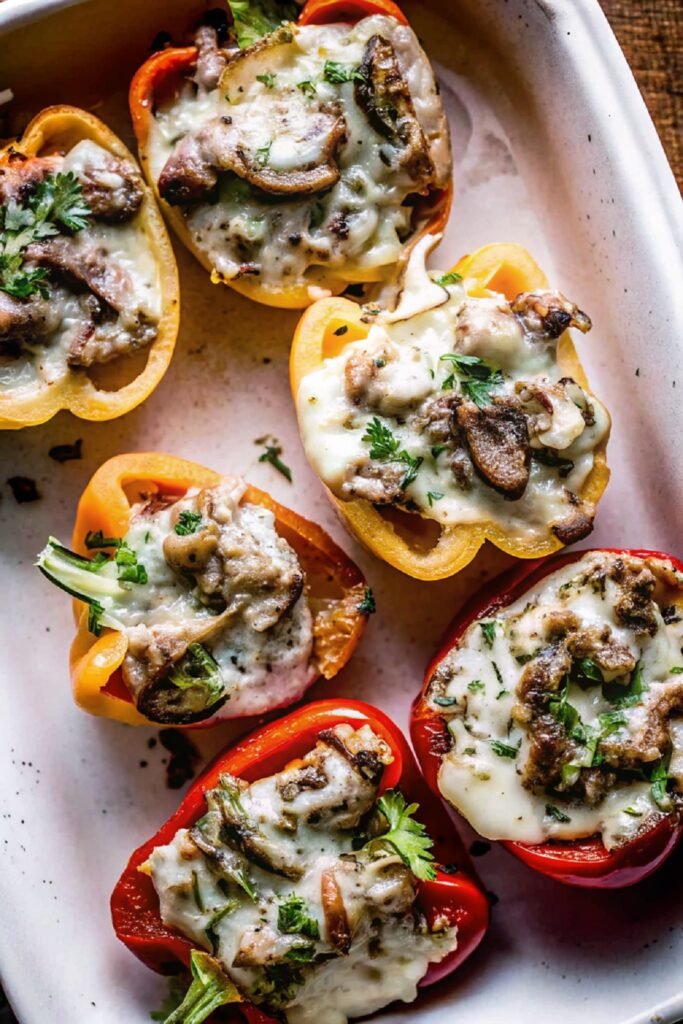 Philly cheese steak stuffed peppers bring together everything people love about a classic cheesesteak while adding a fresh and colorful twist. The sweet roasted peppers hold the savory filling perfectly and make the meal feel both comforting and balanced.