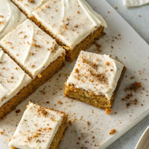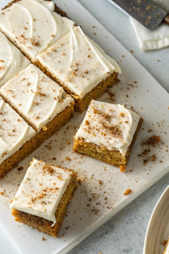Here’s something I like to do: I sprinkle a touch of cinnamon sugar on top of the frosted bars before serving. It gives them a slight crunch and a little sparkle that makes them look bakery-style. Another small twist I sometimes try is folding in white chocolate chips to the batter, which makes every square extra indulgent without overpowering the pumpkin flavor.