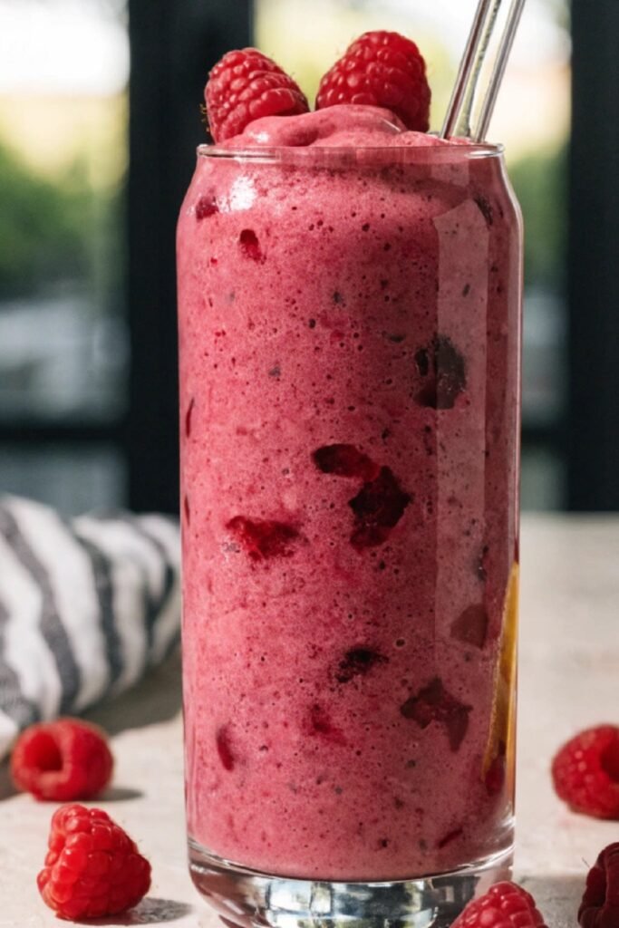 This raspberry smoothie fits easily into different moments of your day. Pour it into a tall glass and add a few whole raspberries on top for a simple finish. You can also serve it in a bowl with sliced fruits, seeds, or granola for a thicker option.