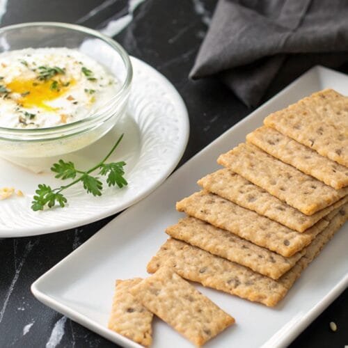 Once the crackers are crisp and cool, serve them with the dip or your favorite spread. I love pairing them with hummus or a creamy herb dip for a quick evening snack.