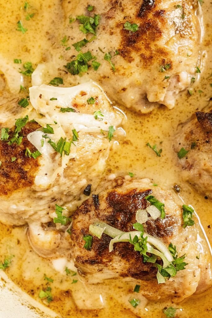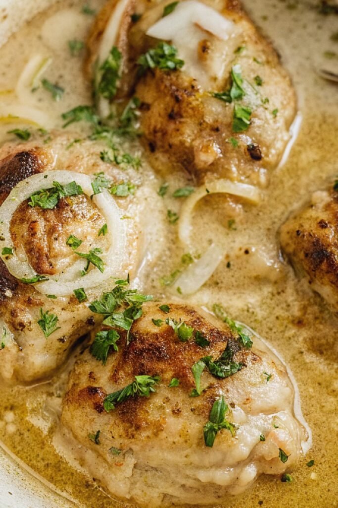 It cooks low and steady to ensure the chicken stays tender, needs no fancy steps or complex ingredients and creates a silky, savory sauce that tastes deeply satisfying.