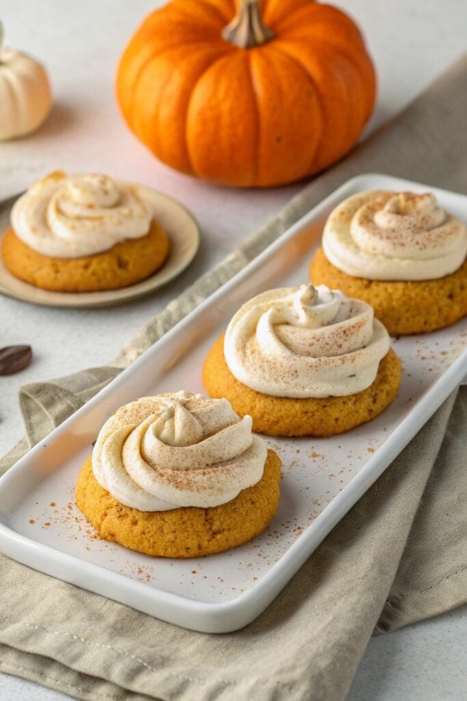 These pumpkin cookies shine on dessert tables, especially during fall gatherings. Serve them with a warm drink like apple cider, chai tea, or hot chocolate for the coziest pairing. They’re also lovely at Thanksgiving dinners, sitting next to pies and cakes as a lighter alternative.