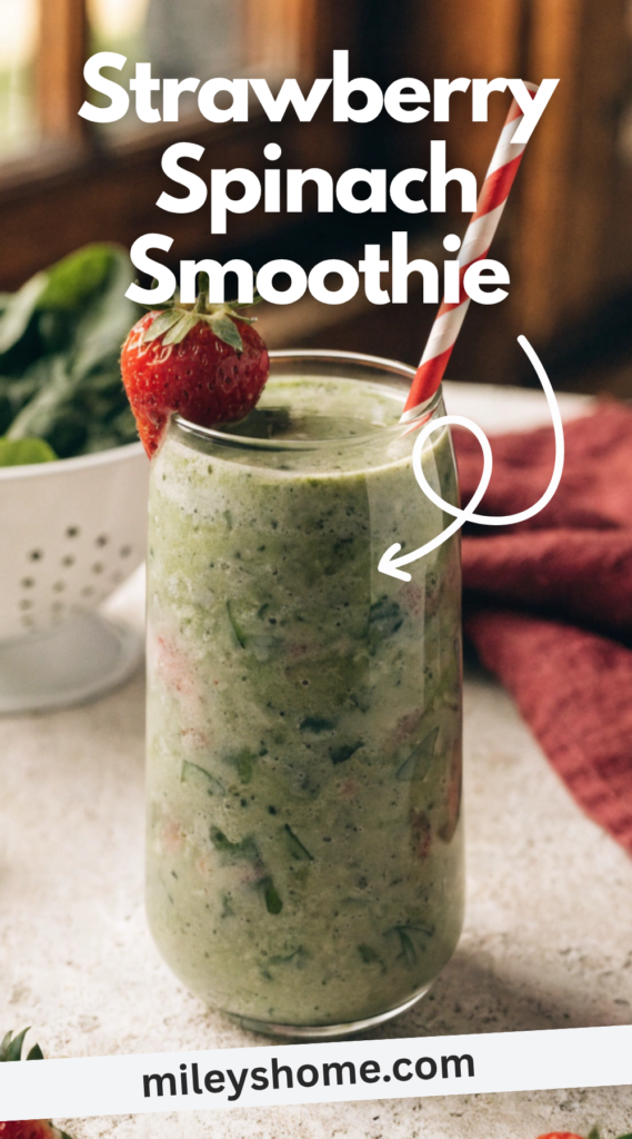 This strawberry spinach smoothie works well in many simple ways. Pour it into a tall glass and top with a slice of strawberry for a clean look. You can also serve it in a bowl with granola, seeds, or sliced fruit for a thicker option.