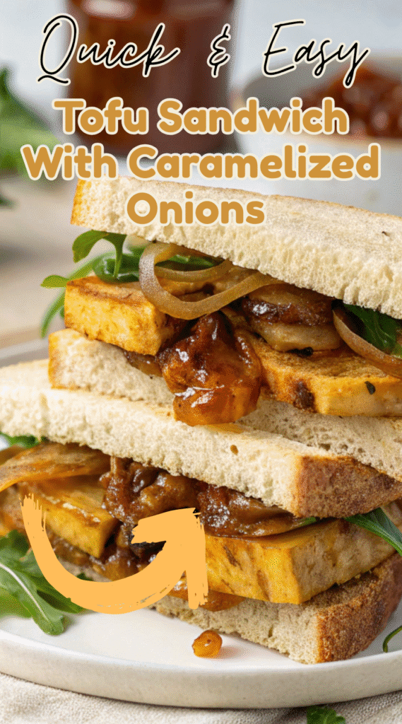 Tofu Sandwich With Caramelized Onions takes the idea of a simple sandwich and makes it into something warm, rich, and deeply satisfying. Crispy tofu slices meet golden caramelized onions that bring a gentle sweetness. Everything gets layered with fresh greens and your favorite bread, creating a sandwich that feels hearty yet balanced. Each bite mixes crunch, creaminess, and a touch of savory sweetness, turning everyday ingredients into a comforting vegan meal.