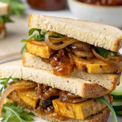 What makes me enjoy this recipe most is the contrast between textures. The tofu gets a light crisp that pairs perfectly with soft onions, and when you add something crunchy like arugula or cucumbers, the balance feels spot-on. It’s a sandwich that proves vegan food can be just as comforting as any classic.