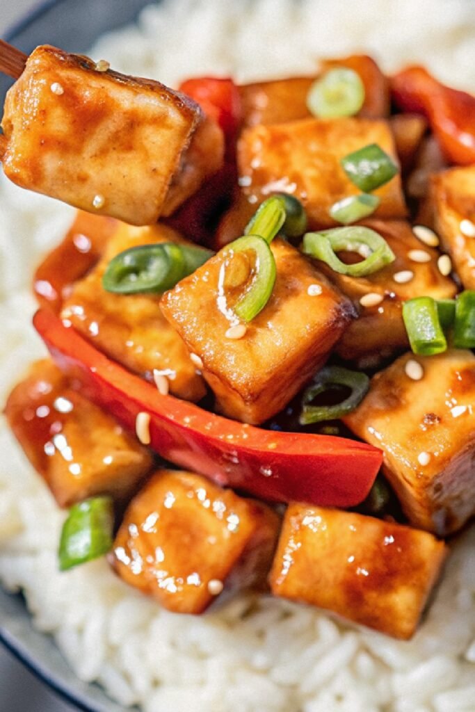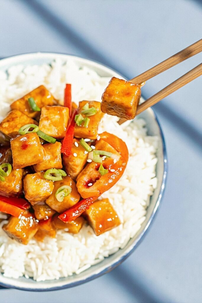 Vegan Orange Tofu pairs perfectly with steamed jasmine rice, brown rice, or even noodles. Serve with a side of sautéed greens or a simple cucumber salad to balance the sweet and tangy flavors. For a fun presentation, place tofu on a bed of rice and garnish with spring onions, extra orange zest, and a few sesame seeds. Every bite will have a sticky, citrusy punch.