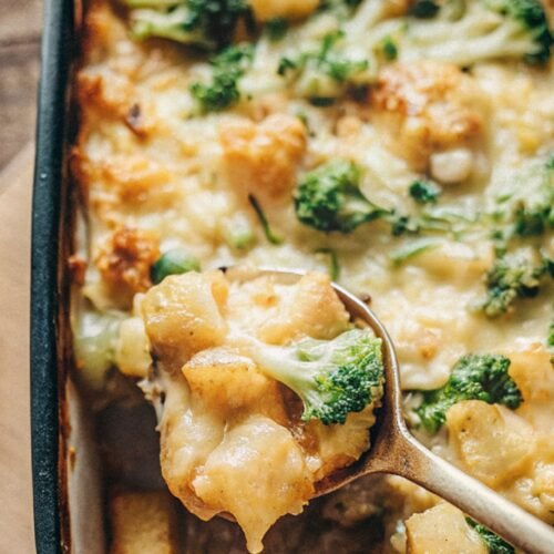 The best part about this vegan potato casserole? You can easily swap in cauliflower, peas, or green beans for some or all of the broccoli, use your favorite non-dairy milk or cream, and top it with any melty vegan cheese or crunchy crumb you like. It’s endlessly adaptable, always cozy, and one of those steady, grounding meals you’ll come back to again and again.