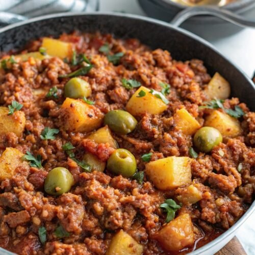 Vegan Puerto Rican Picadillo brings the warmth of a familiar dish with a plant-based twist that still keeps its soul. The mix of sofrito, tomato sauce, olives, spices, and tender potatoes creates a bowl that feels hearty and full of comfort. Whether you scoop it over rice or tuck it into tacos, this recipe gives you that bold, home-cooked flavor with very little effort.