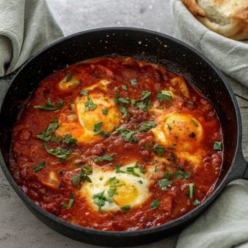 That’s it! It’s surprisingly simple to make, and easy to adjust to the season or your mood, add extra veggies, more heat, or different herbs. Leftovers keep well in the fridge for a couple of days; just reheat gently on the stove so the sauce stays rich and the chickpea “eggs” stay soft. It’s one of those dishes that always looks impressive, but feels wonderfully homey and unfussy..