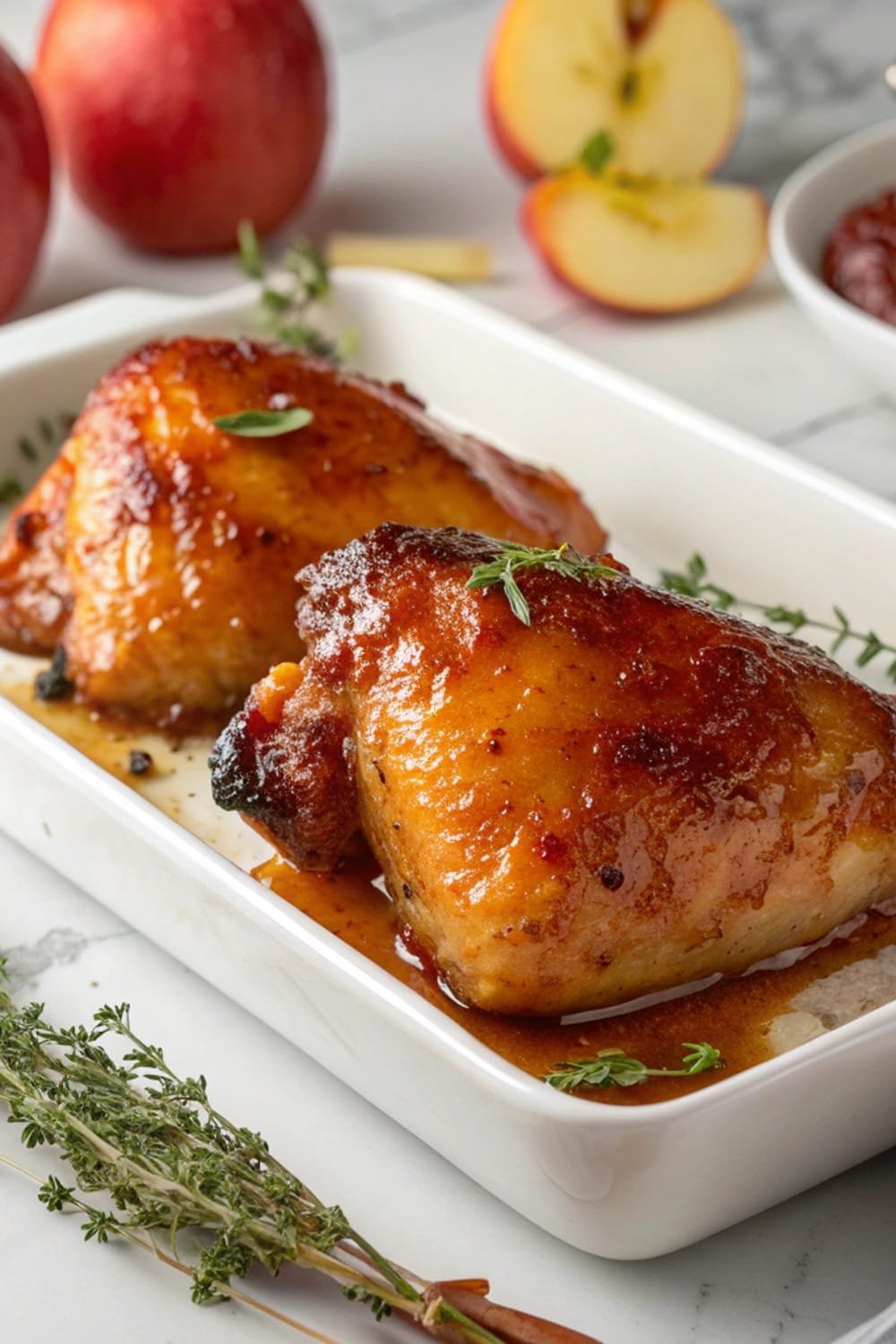 - Build glaze with apple cider, maple syrup, Dijon, garlic, vinegar, and thyme.