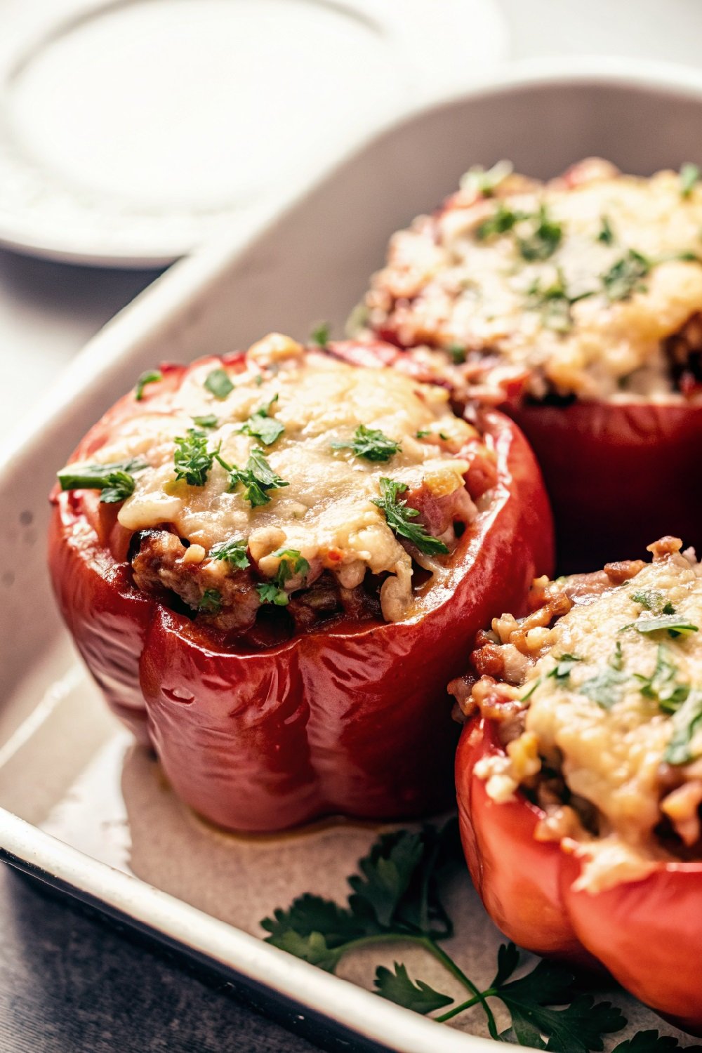 Bake: Preheat oven to 375°F (190°C). Cover the baking dish with foil and bake for 30 minutes. Remove the foil and bake an additional 10–15 minutes until the peppers are tender and the cheese is golden and bubbly.