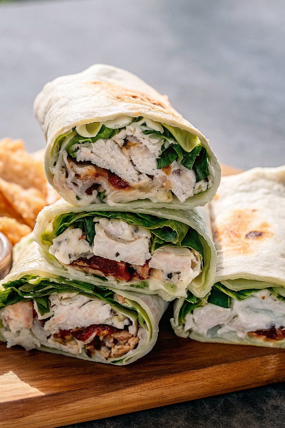 Assemble the Wraps: Place lettuce leaves down the center of each tortilla. Spoon the chicken bacon ranch mixture on top. Spread it evenly so every bite gets filling.