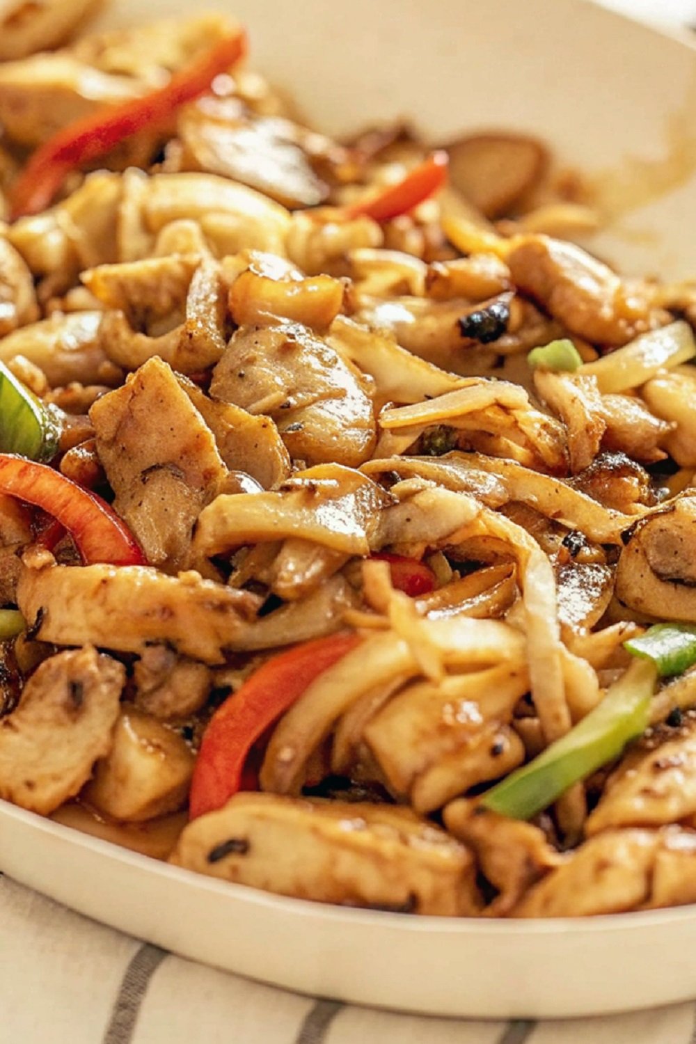 Bring Everything Together: Return the chicken to the pan. Pour in the prepared sauce and toss well so everything gets coated. Let it simmer briefly until the sauce thickens and clings to the chicken and vegetables.