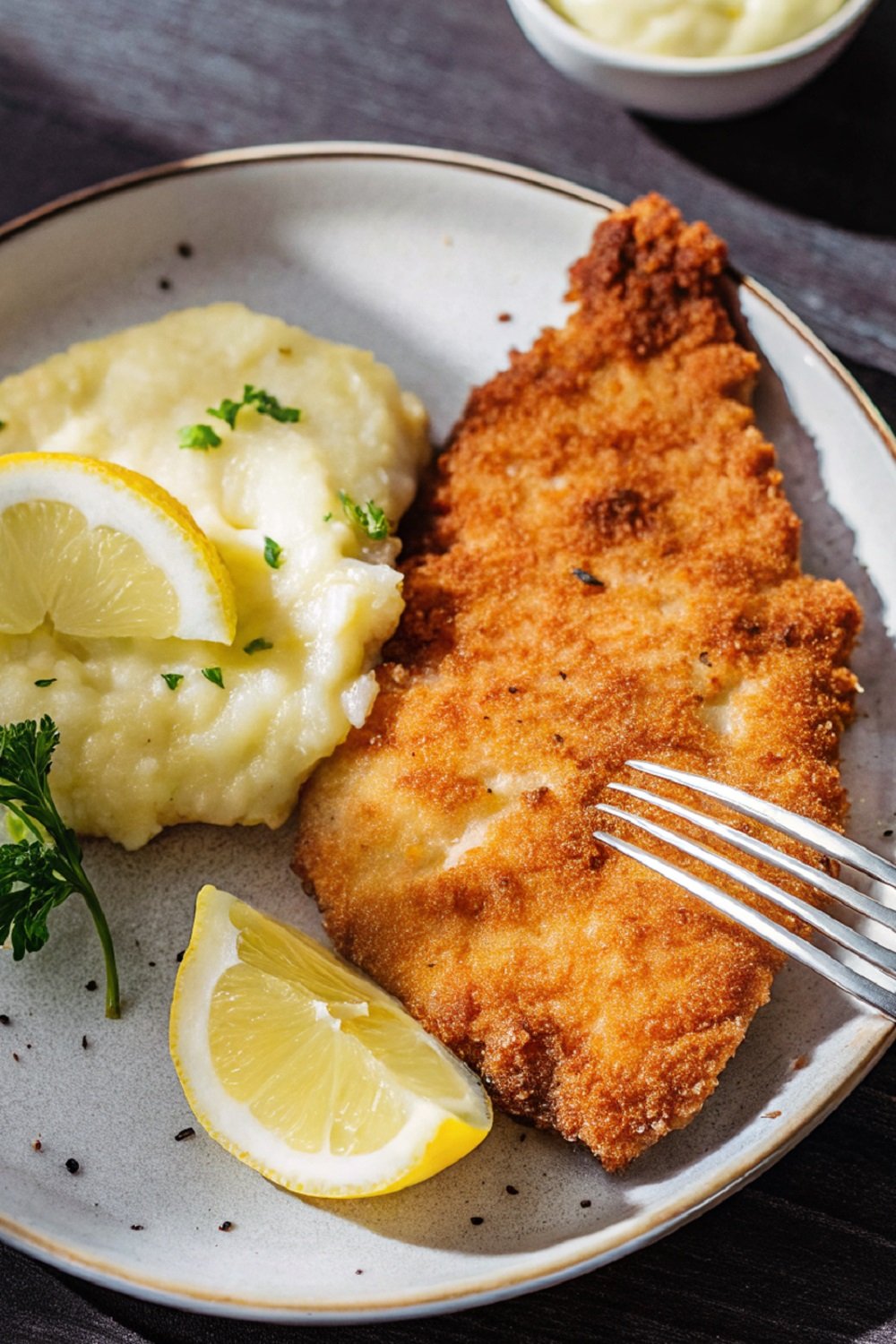 Finish and Garnish: Sprinkle chopped parsley over the schnitzel and serve immediately with lemon wedges and Dijon mustard.