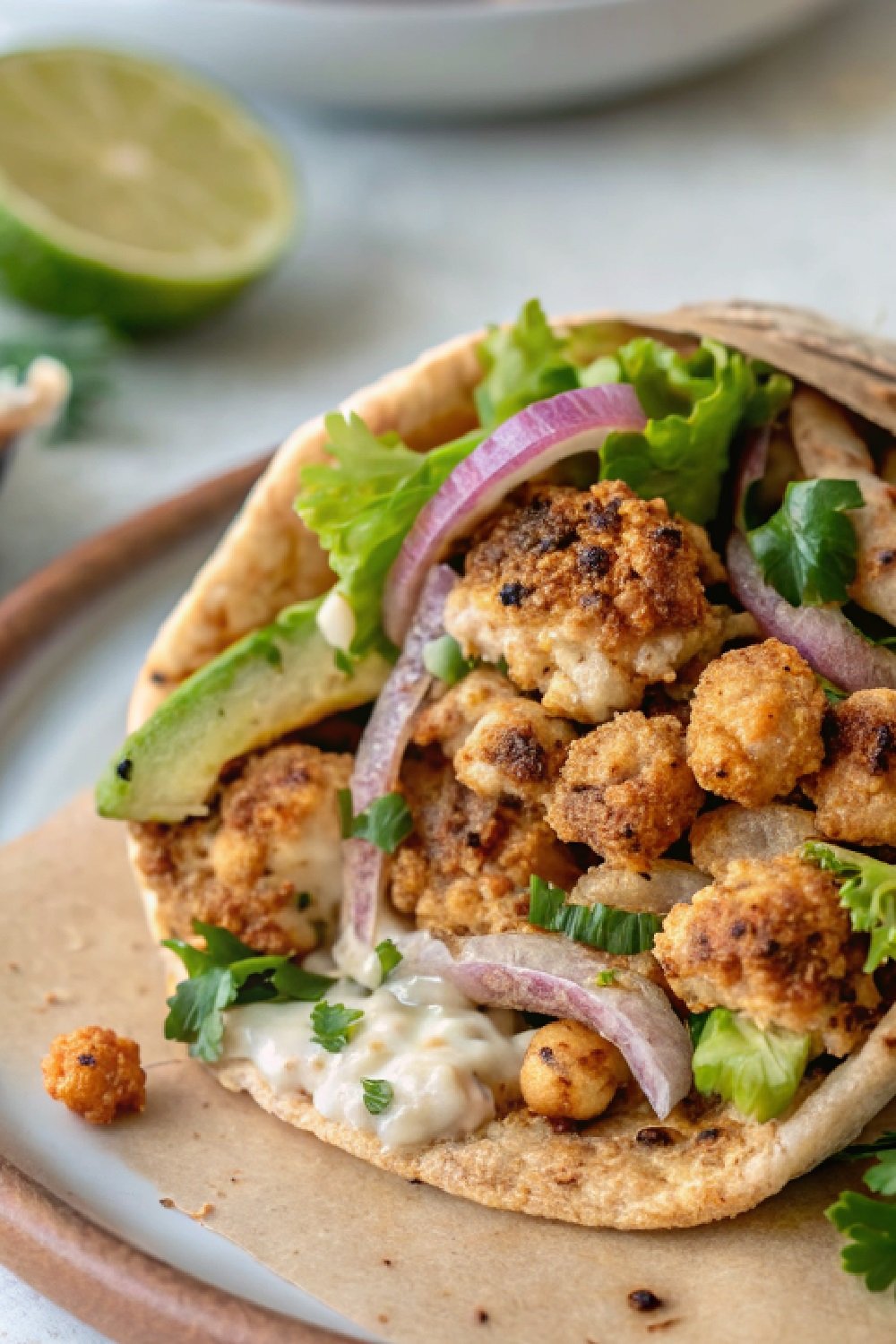 - Warm tortillas, layer greens, roasted vegetables, avocado, and bell pepper. Drizzle sauce if desired.