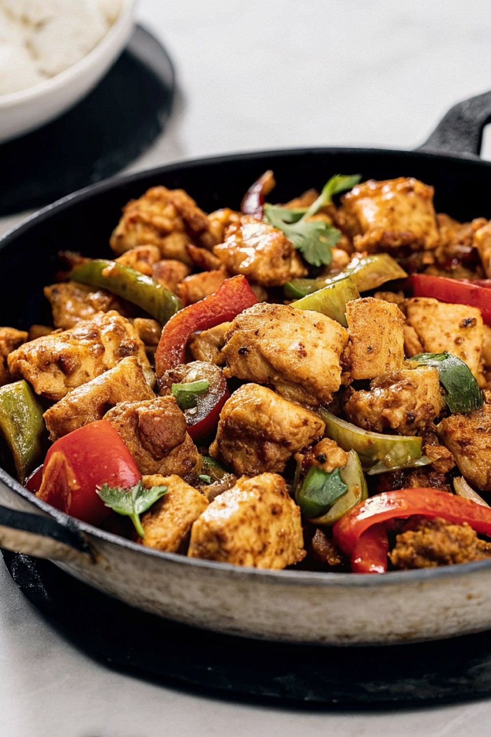 Add Peppers and Chicken: Bell peppers slide into the pan and stay vibrant. Chicken returns along with any resting juices. Everything gets tossed so sauce coats evenly.