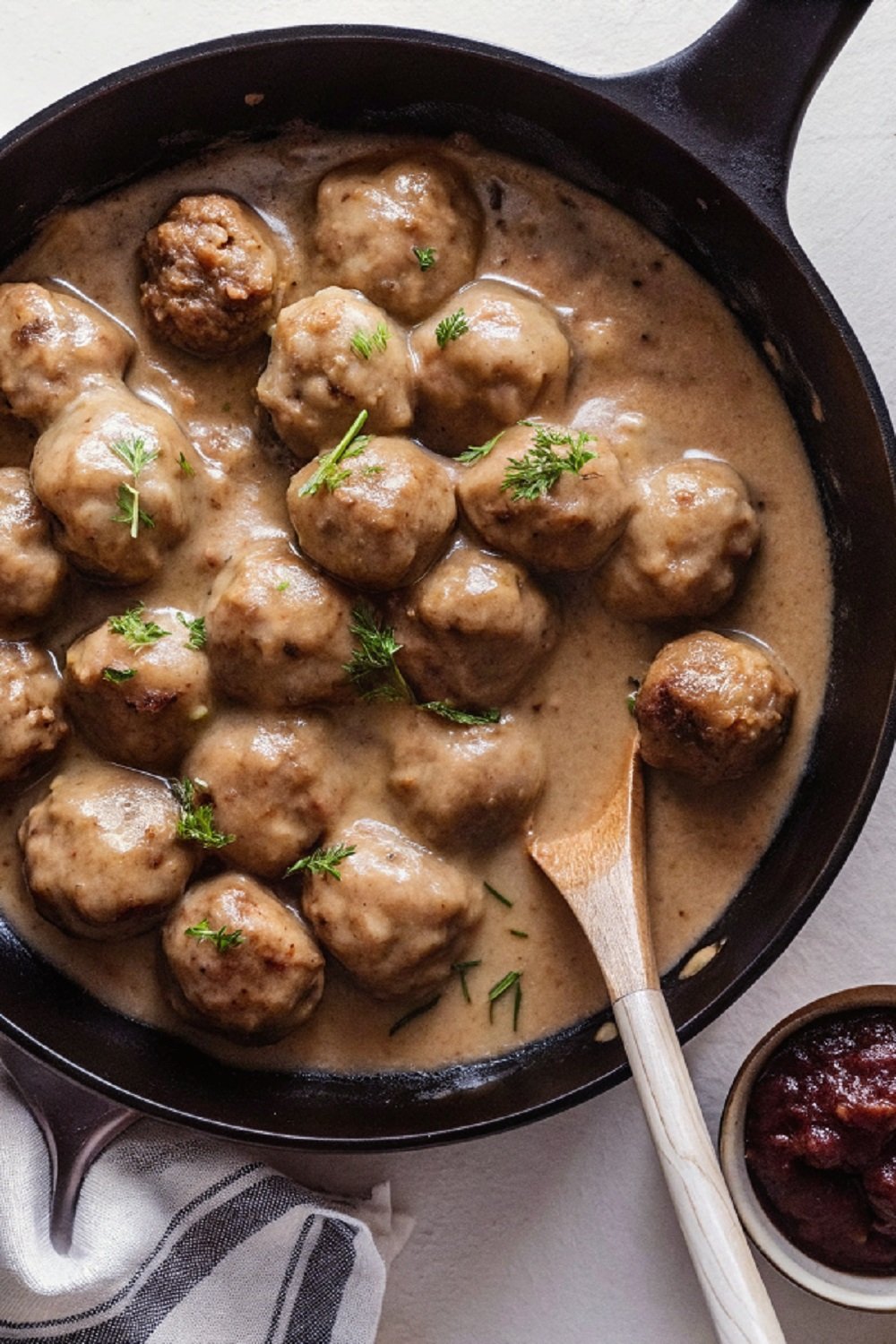 Add cream and meatballs: Stir in heavy cream and return meatballs to the pan. Simmer gently until meatballs cook through and the sauce thickens around them. Taste and adjust seasoning if needed.