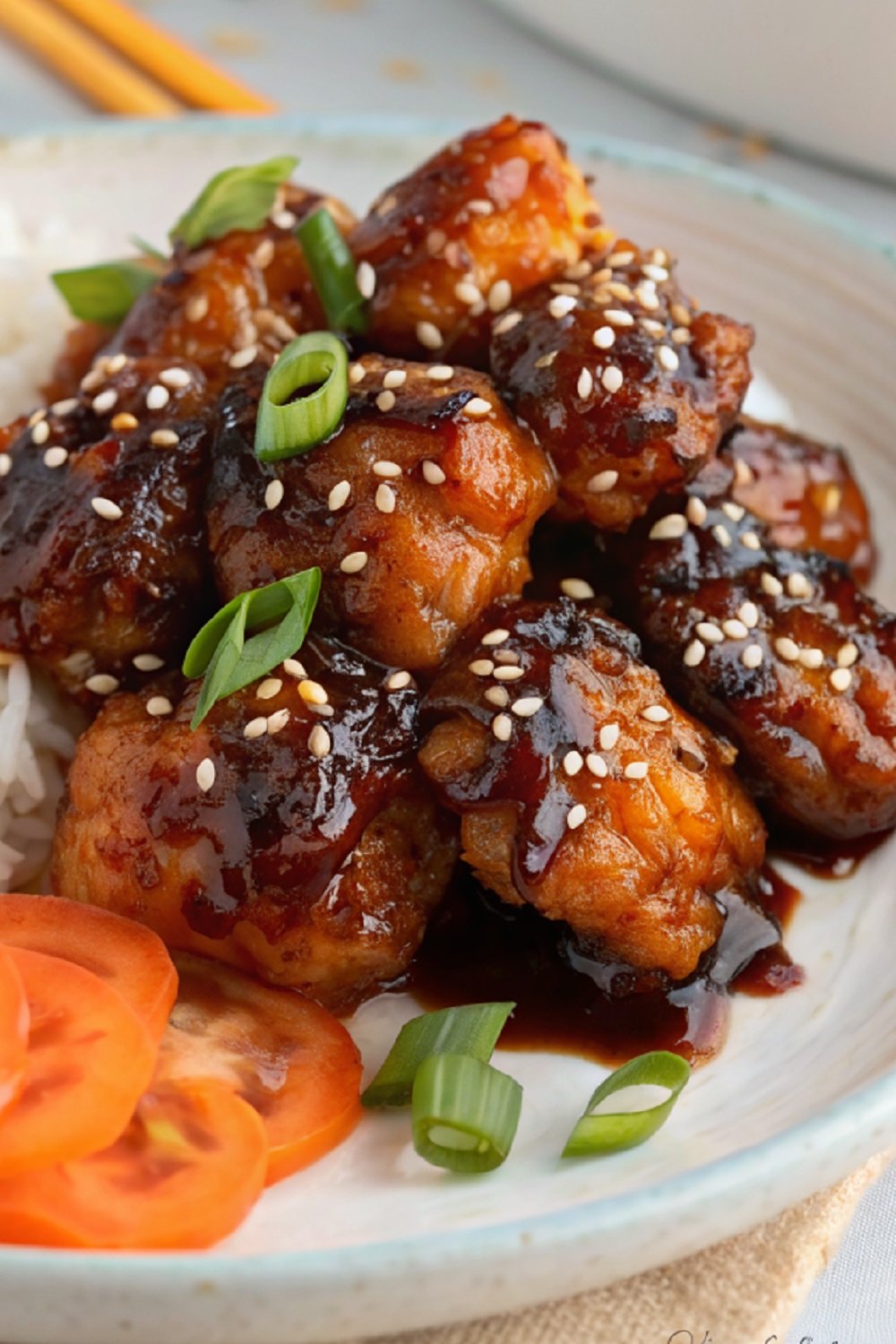 - Garnish with sesame seeds and green onions; serve hot with rice.