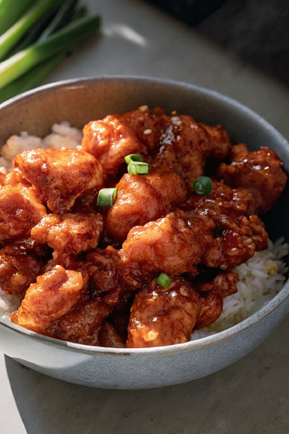 Crispy chicken tossed in a sweet, spicy, sticky firecracker sauce.