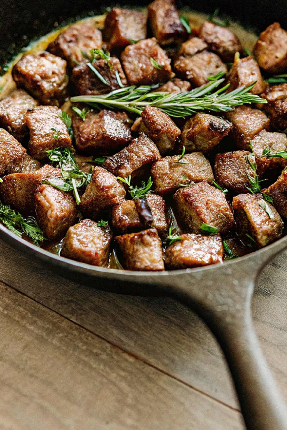 Sear the Steak Bites: Add the steak pieces in a single layer. Avoid crowding the pan so each piece browns properly. Let them cook without moving for about 2 minutes. Flip and cook another 2 minutes until the outside turns golden and the inside stays tender. Remove the steak and set aside.