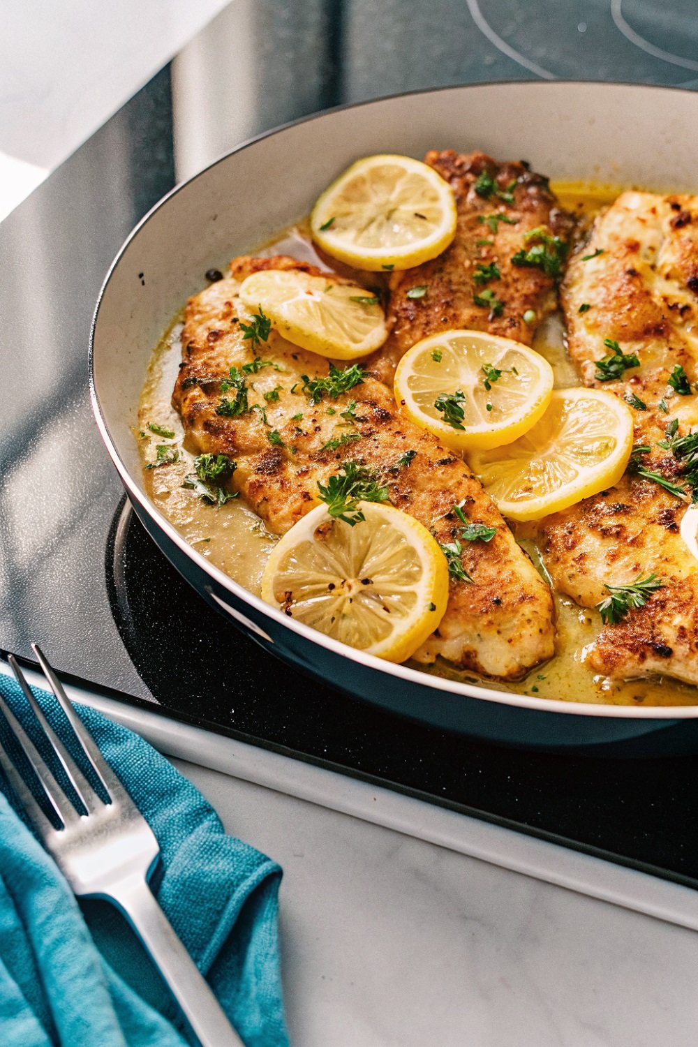 Golden pan cooked chicken served with a smooth lemon butter sauce that feels bright and comforting.