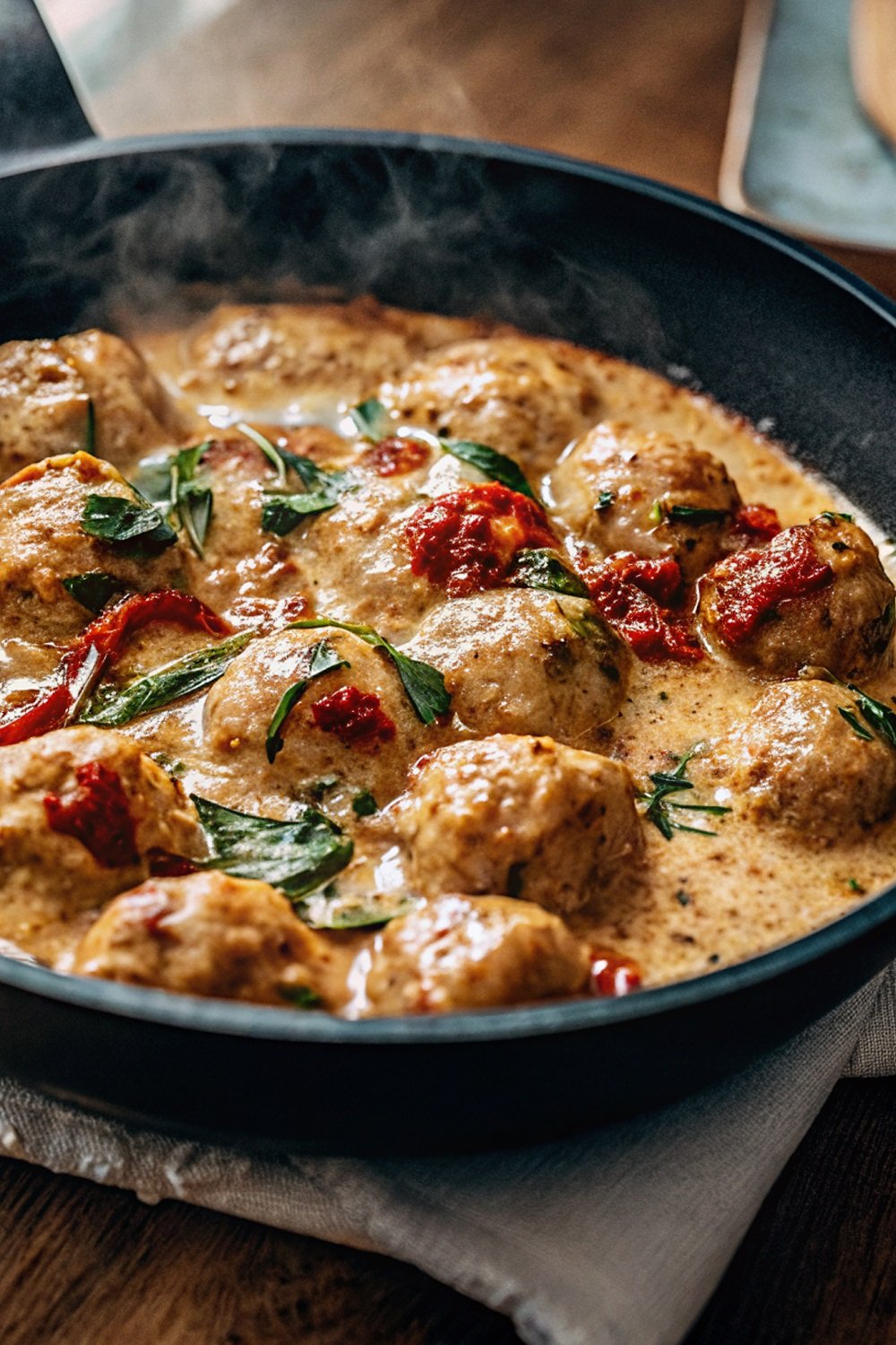 Finish and Garnish: Once the sauce thickens and the meatballs cook through, sprinkle chopped basil or parsley over the top. The fresh herbs add a pop of color and brighten the rich sauce just before serving.