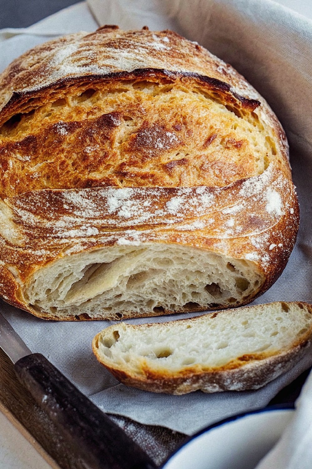 Shape Gently: Lightly flour a clean surface. Turn the dough out carefully and fold it over itself once or twice using floured hands. Shape it into a rough round. No need to smooth it. Keep handling minimal.