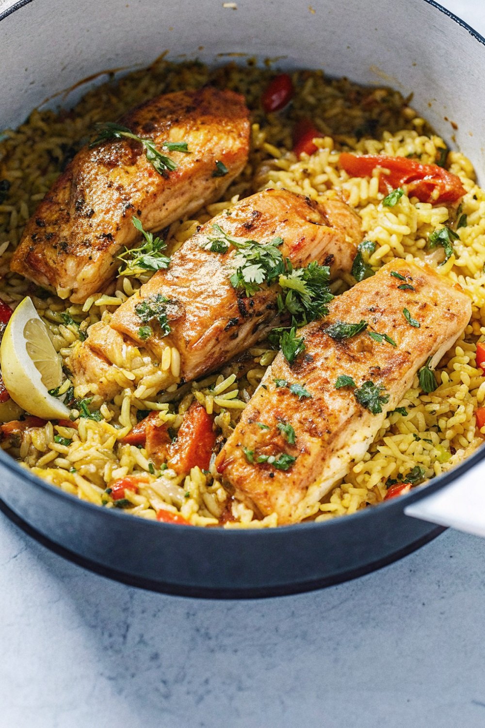 Finish and Rest: Turn off the heat and let the pot rest, covered, for 5 minutes. This helps the rice finish steaming and keeps the salmon tender.