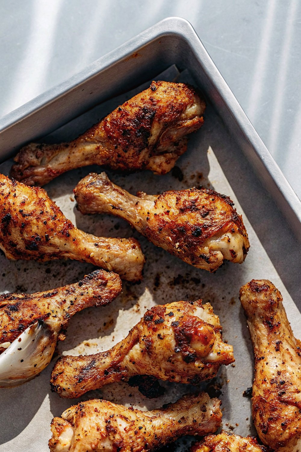Oven baked drumsticks with crisp skin and bold herb seasoning.