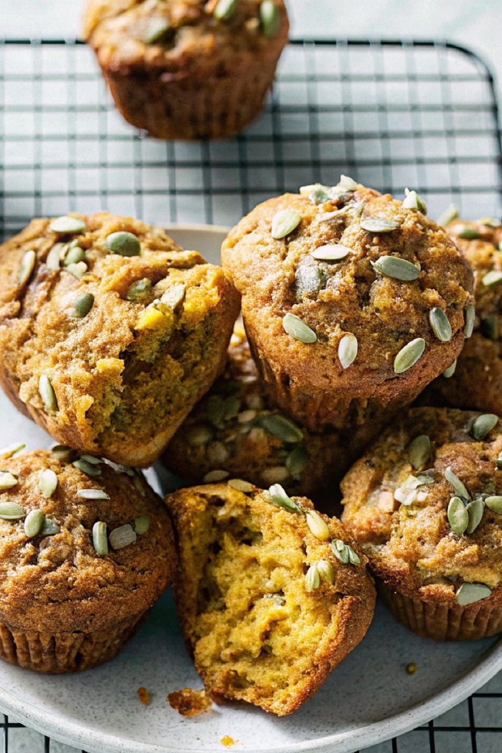 Fill the Muffin Cups: Spoon the batter evenly into the muffin pan, filling each cup about three quarters full. Sprinkle pepitas and turbinado sugar on top for crunch.
