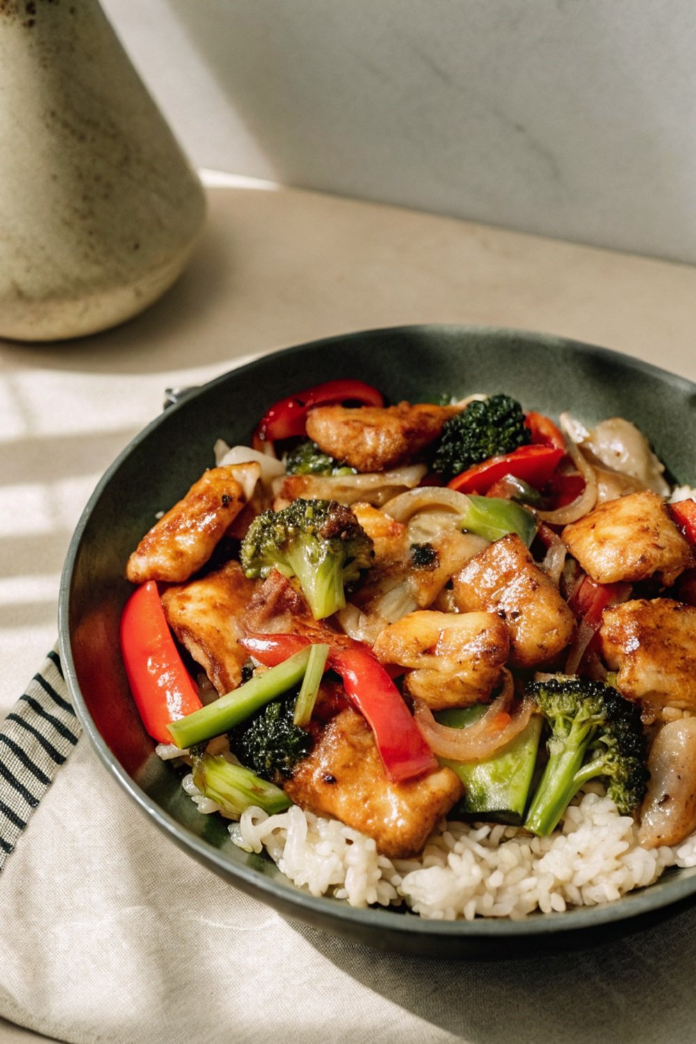 Tender chicken and crisp vegetables coated in a glossy homemade teriyaki sauce.