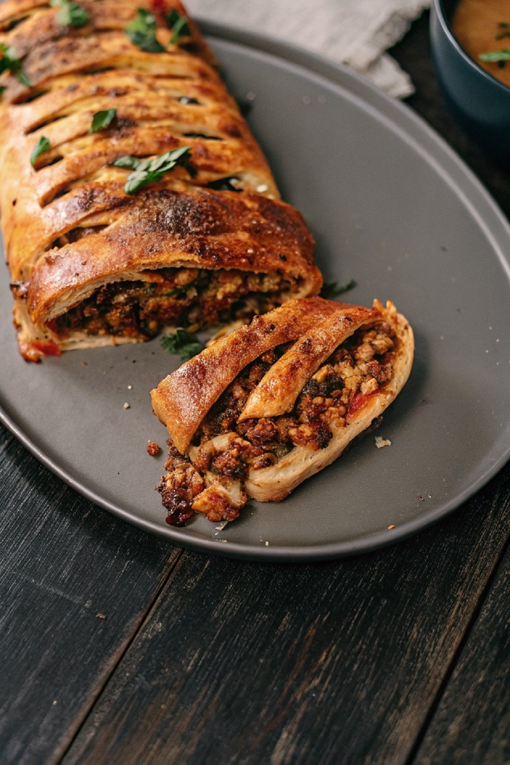 - Roll into a log, brush with butter and oil, and bake until golden.