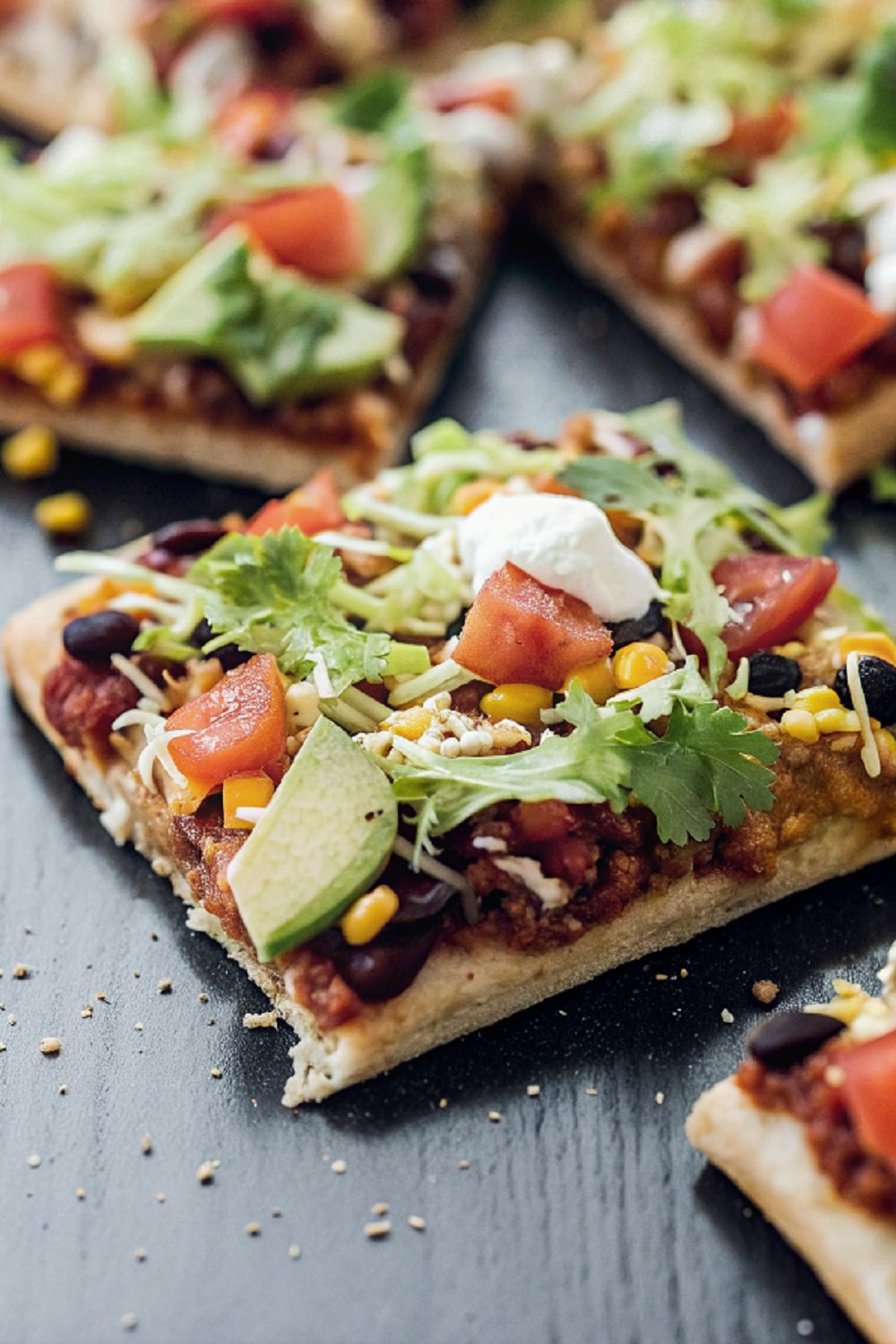 - Finish with lettuce, tomatoes, avocado, and red pepper flakes.